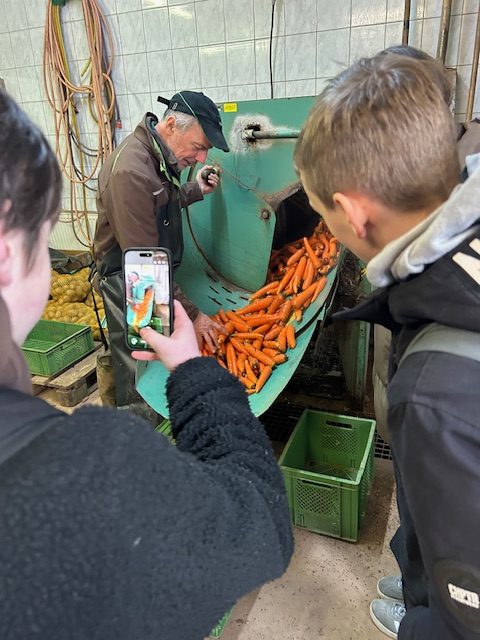 Ein besonderes Highlight war die Gemüsewaschmaschine: Die Klasse durfte dabei zusehen, wie frisch geerntete Karotten gewaschen wurden und konnten diese anschließend sogar probieren. Zum Abschluss hatten die Schülerinnen und Schüler die Möglichkeit, den Bioladen des Hofes zu besuchen und einen Eindruck vom vielfältigen Angebot regionaler Bio-Produkte zu gewinnen.