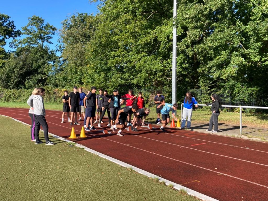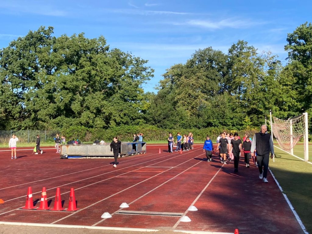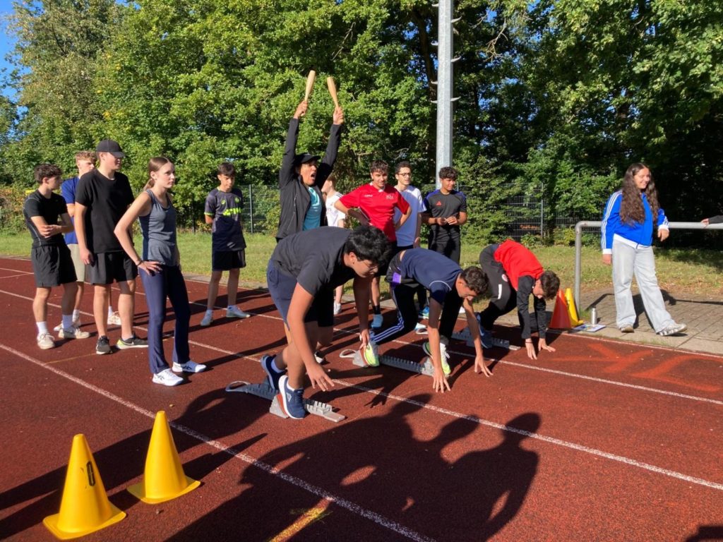 Zu Beginn des Schuljahres 2025/2026 sind wir mit einem Sportfest im Rahmen der Bundesjugendspiele gestartet. Am 29.August meinte der Wettergott es gut mit uns: Es war weder zu kalt noch zu heiß, und die morgendlichen Wolken verzogen sich bald zugunsten wunderschönen Sonnenscheins. Jetzt hieß es, sich in den verschiedenen Disziplinen -Weitsprung, Sprint, Weitwurf, Ausdauerlauf – zu messen. Auch wenn nicht jeder eine ‚Sportskanone‘ ist, haben doch alle ihr Bestes gegeben und es hat Spaß gemacht. Wir sind schon gespannt auf die Ehrungen durch die Urkunden, die uns die Schulleiterin und die Sportlehrer*innen Patrick Fouquet, Heidi Leis, Paul Großmann und Thomas Saterdag, die das Sportfest bestens organisiert haben, überreichen werden. Es ist schon toll, so einen professionellen Sportplatz in Saarwellingen zur Verfügung zu haben! Ein großer Dank auch an die Sanitäter des DRK Saarwellingen, die immer zur Stelle sind und dem Pausenverkaufsteam um Frau Neusius, die alle bestens versorgt haben.