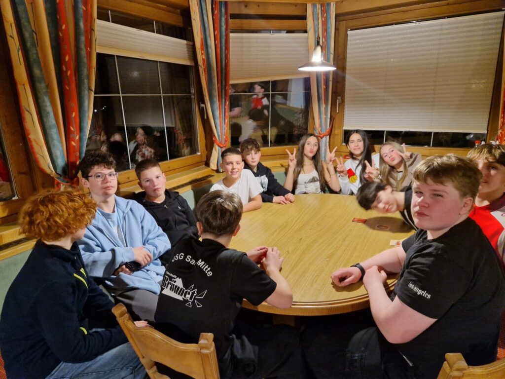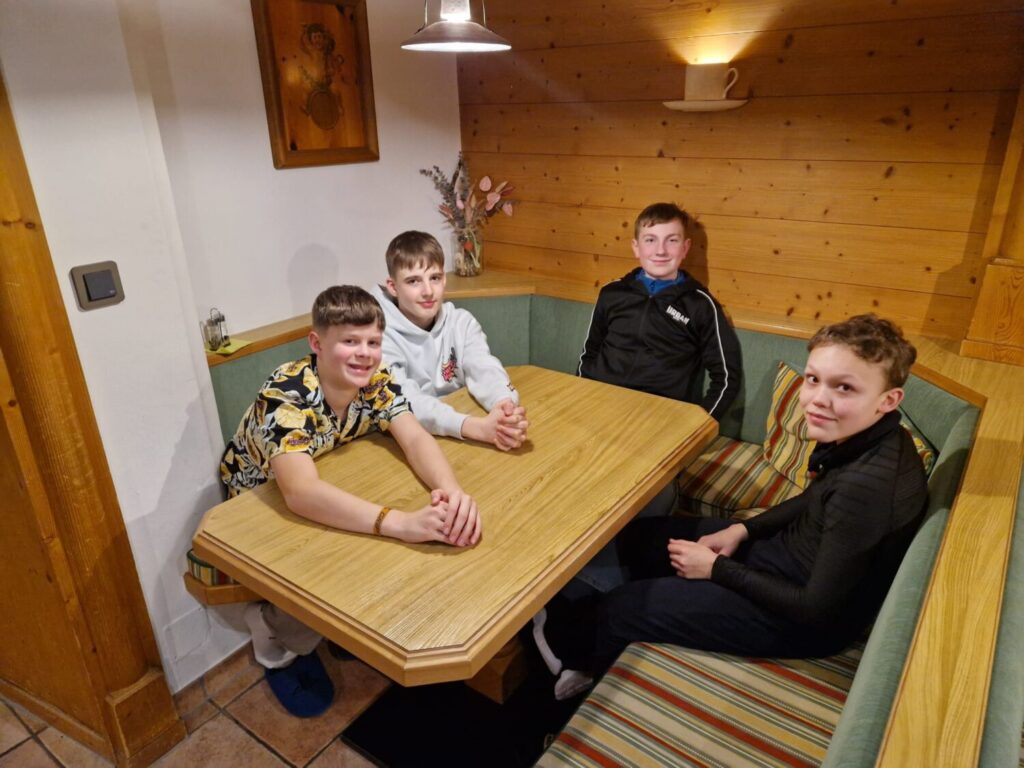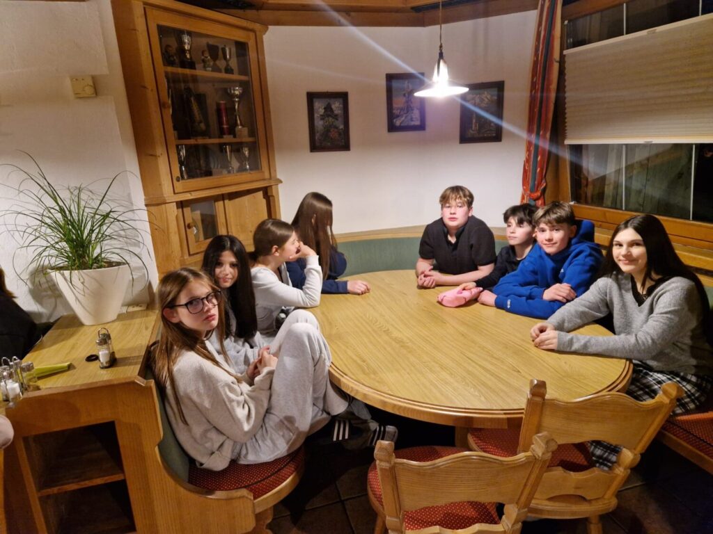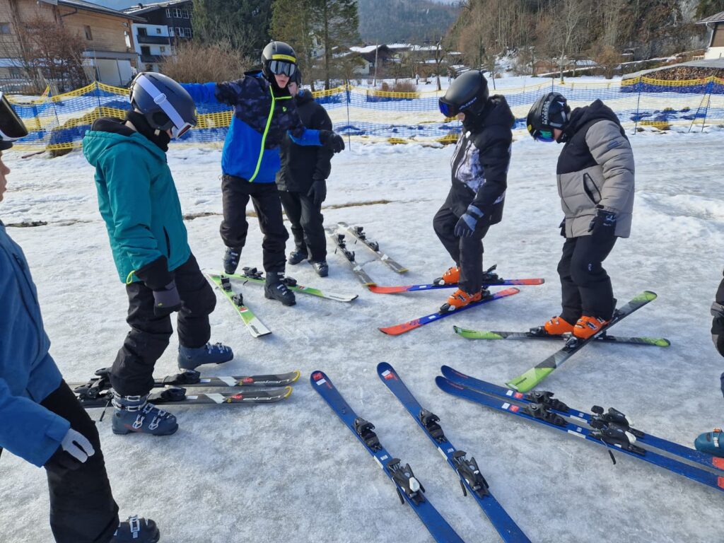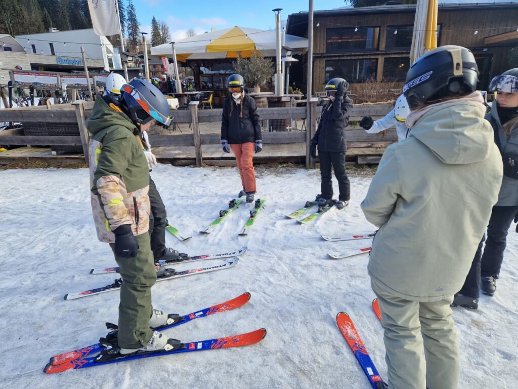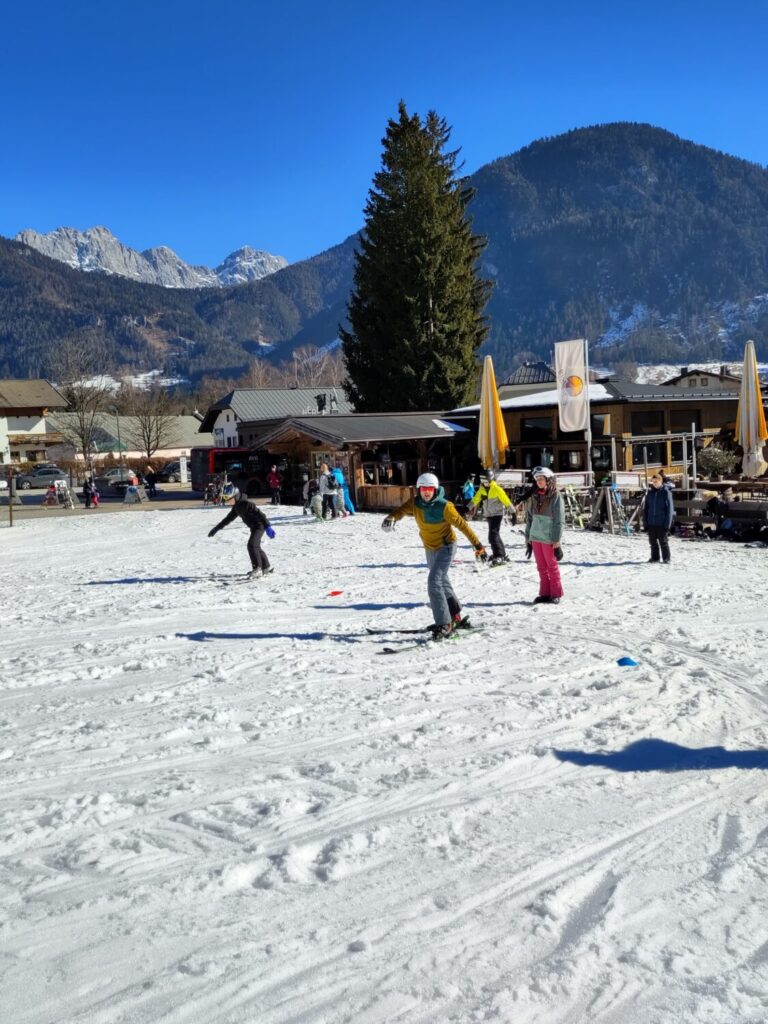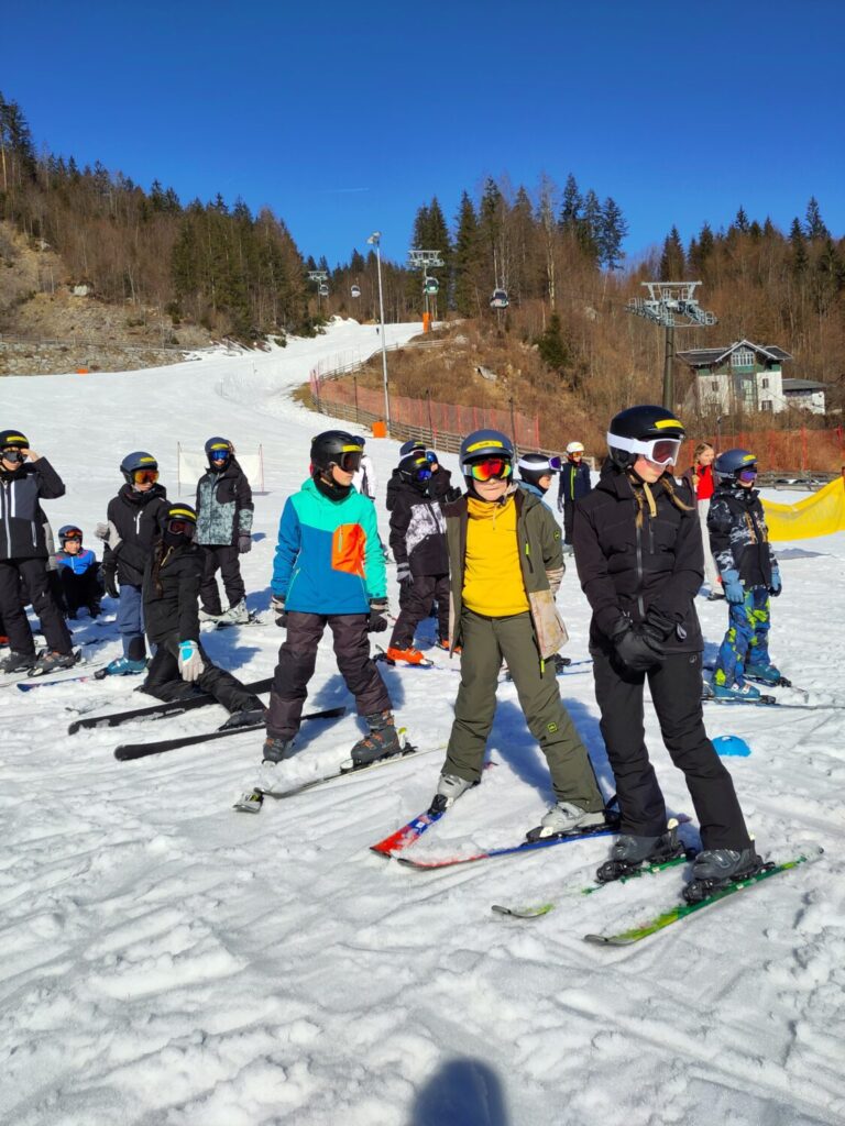 Bei bestem Wetter startete der erste Tag auf der Piste. Die Motivation für erste Kurven war grenzenlos. Allerdings merkten einige schnell, dass Skifahren auch anstrengend sein kann. Trotzdem hielten alle tapfer bis zum Schluss durch. Alle haben den ersten Tag unversehrt und bei bester Laune überstanden und fiebern dem morgigen Tag schon entgegen.