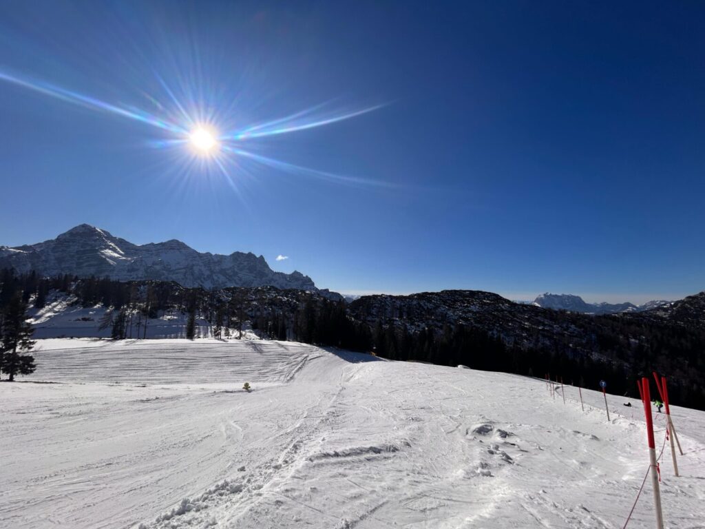 Bei bestem Wetter startete der erste Tag auf der Piste. Die Motivation für erste Kurven war grenzenlos. Allerdings merkten einige schnell, dass Skifahren auch anstrengend sein kann. Trotzdem hielten alle
